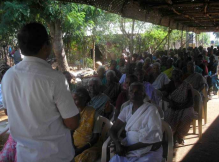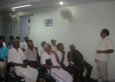 A training on health awareness, sanitation and protection was conducted on 15 – 04– 2015 in at community hall in Tiruppur on the subject of sanitation and social development of scavengers. They were trained on how to wear protective equipments for attending work and the impact of working without wearing these equipments and advantages of wearing such equipments. They were taught that they can prevent contagious diseases, dengue, malaria and skin diseases by using these equipments. Our coordinator and organizers provided this training at their living places, so they benefited much from this training.